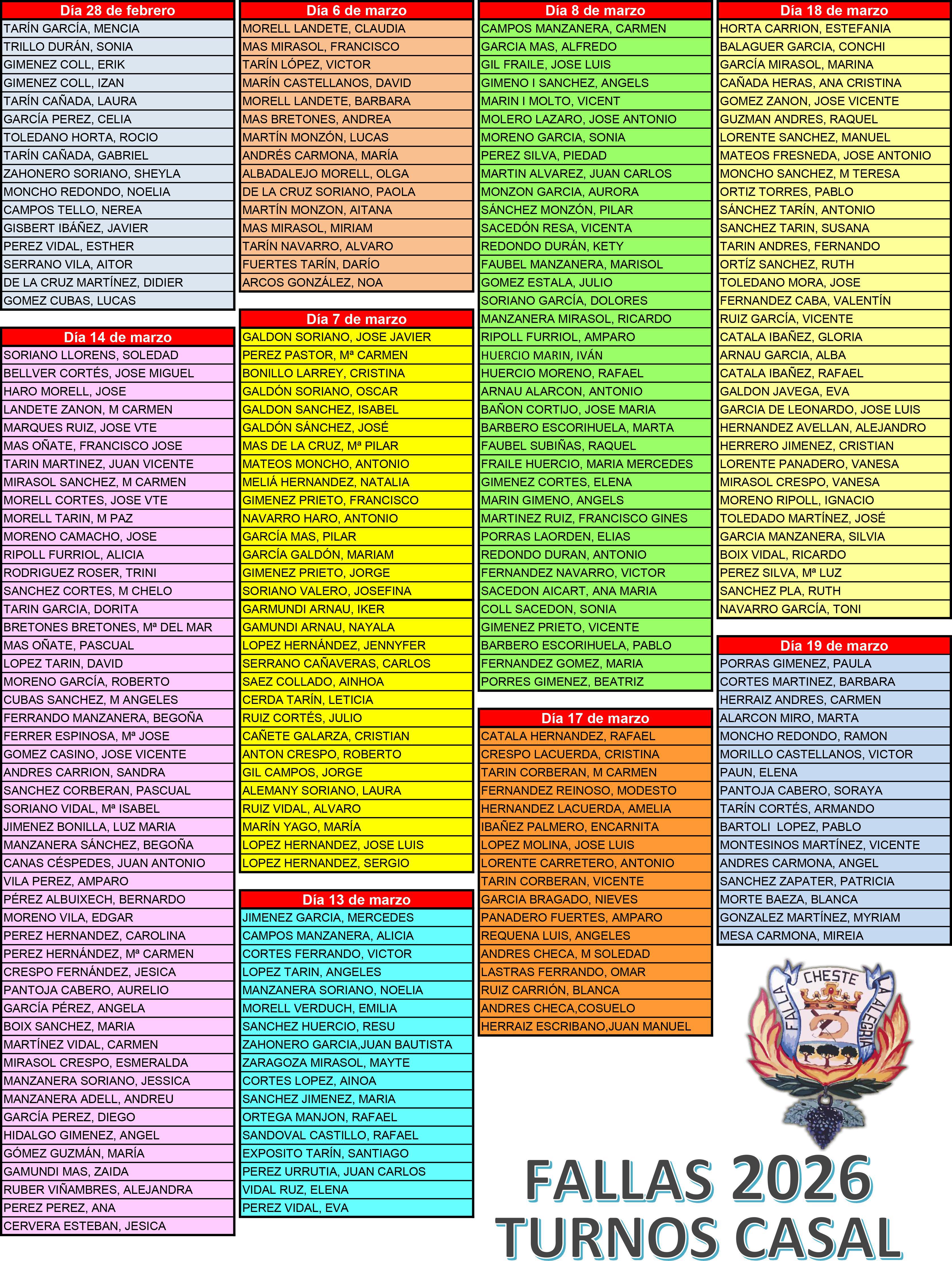 Turnos de Casal 2026