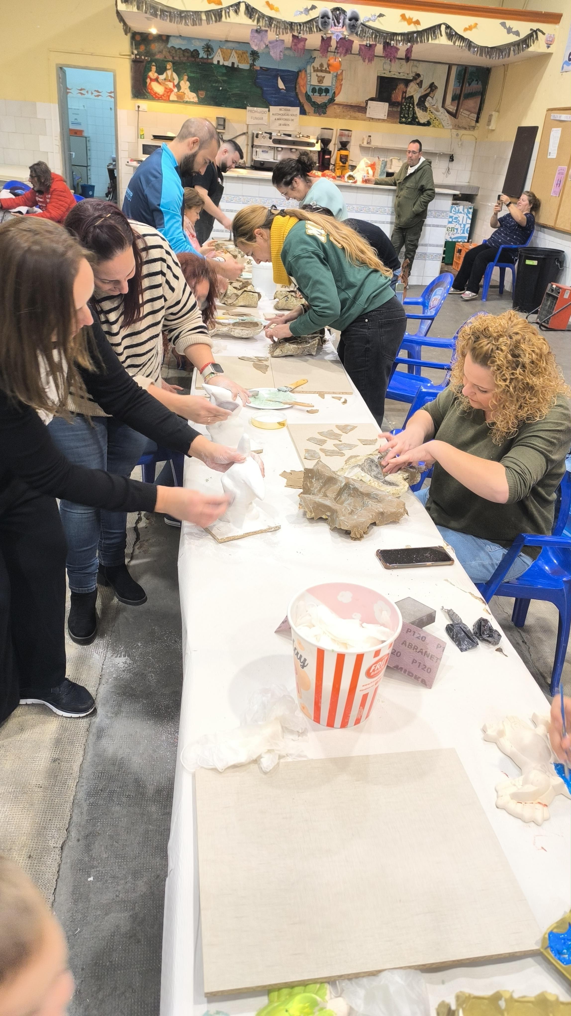 Mayores y pequeños disfrutaron de lo lindo preparando los moldes de donde luego salen los ninots.