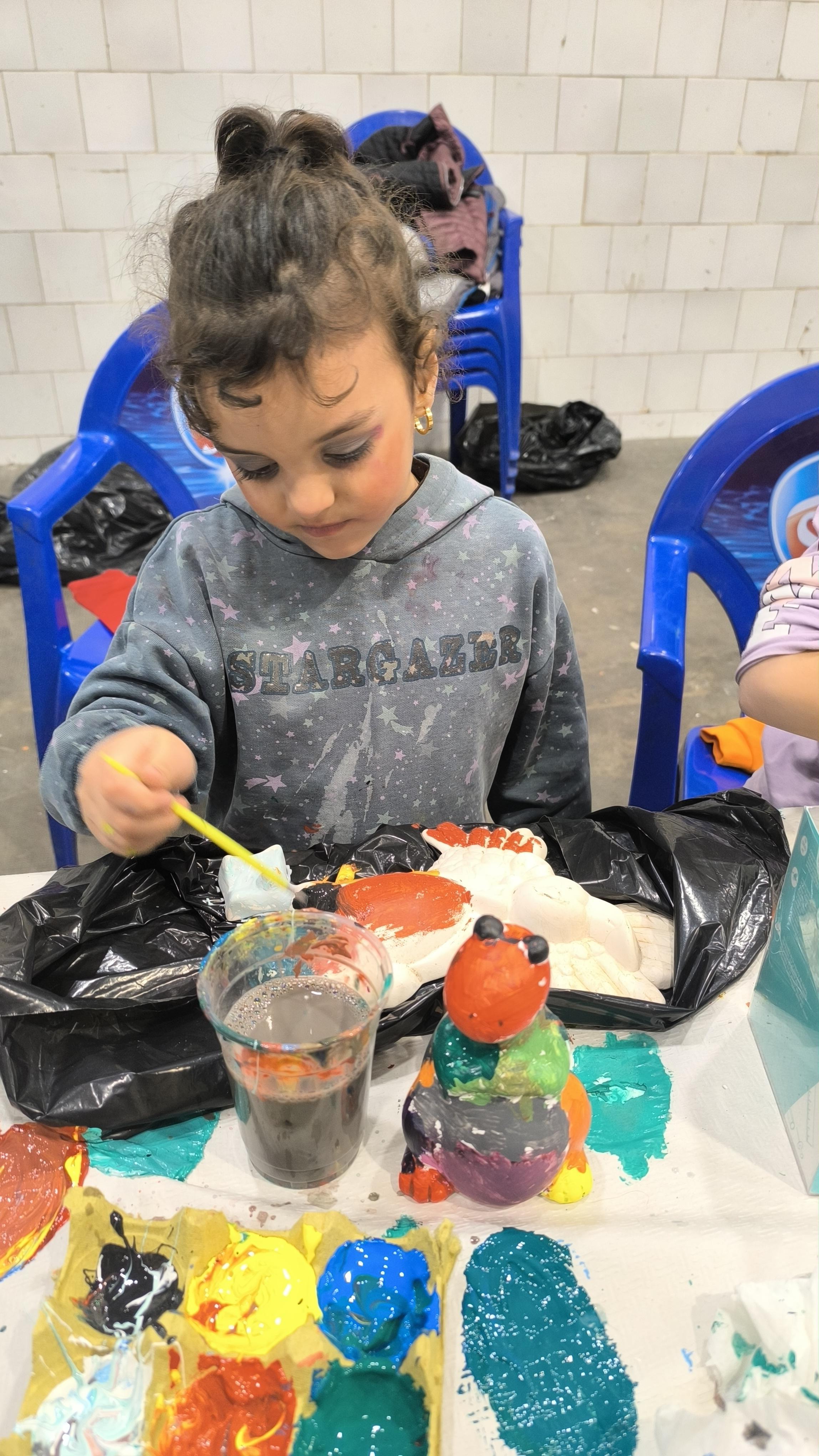 Mientras los mayores preparaban los moldes, los más pequeños demostraban su arte e ingenio pintando ninots.